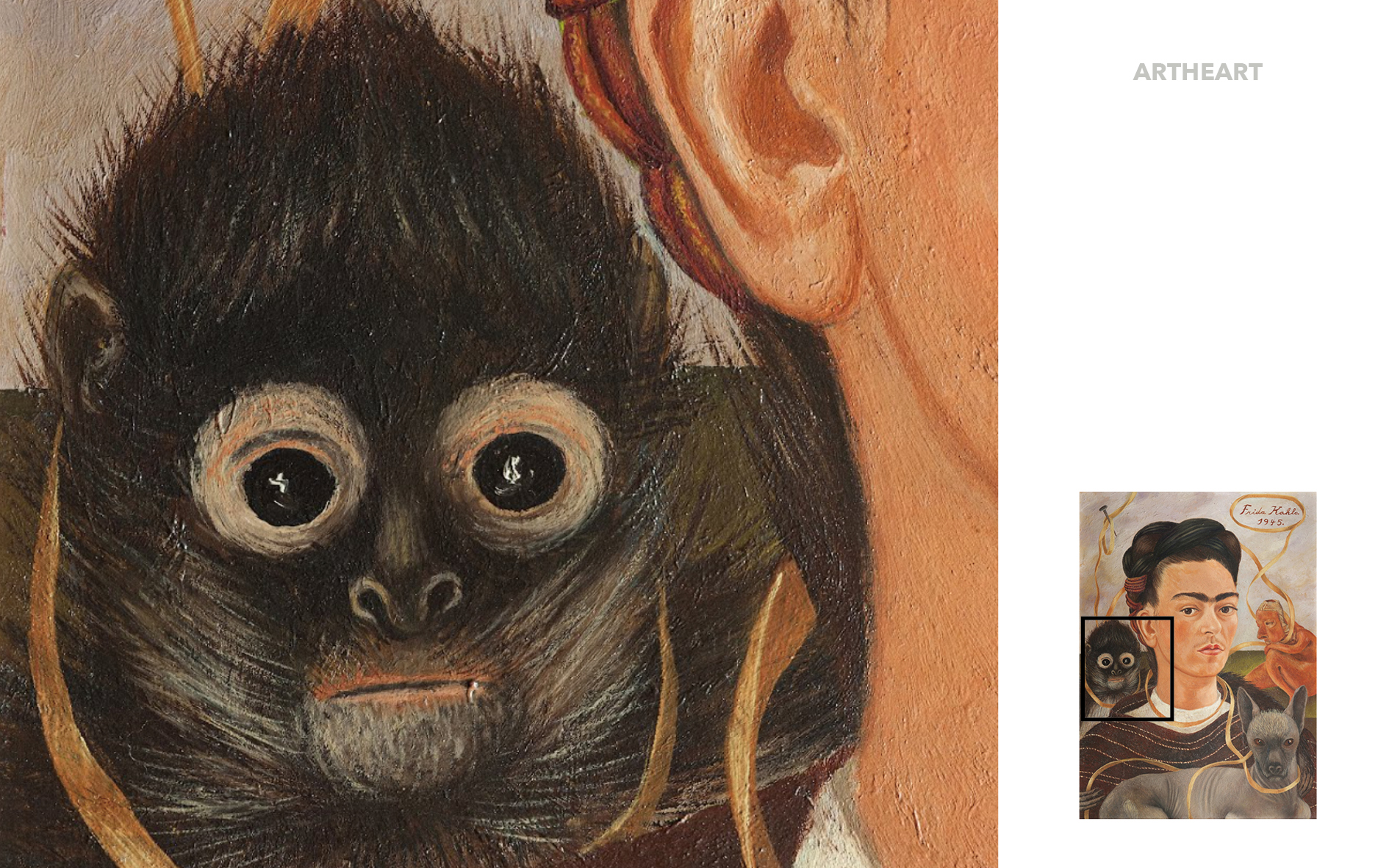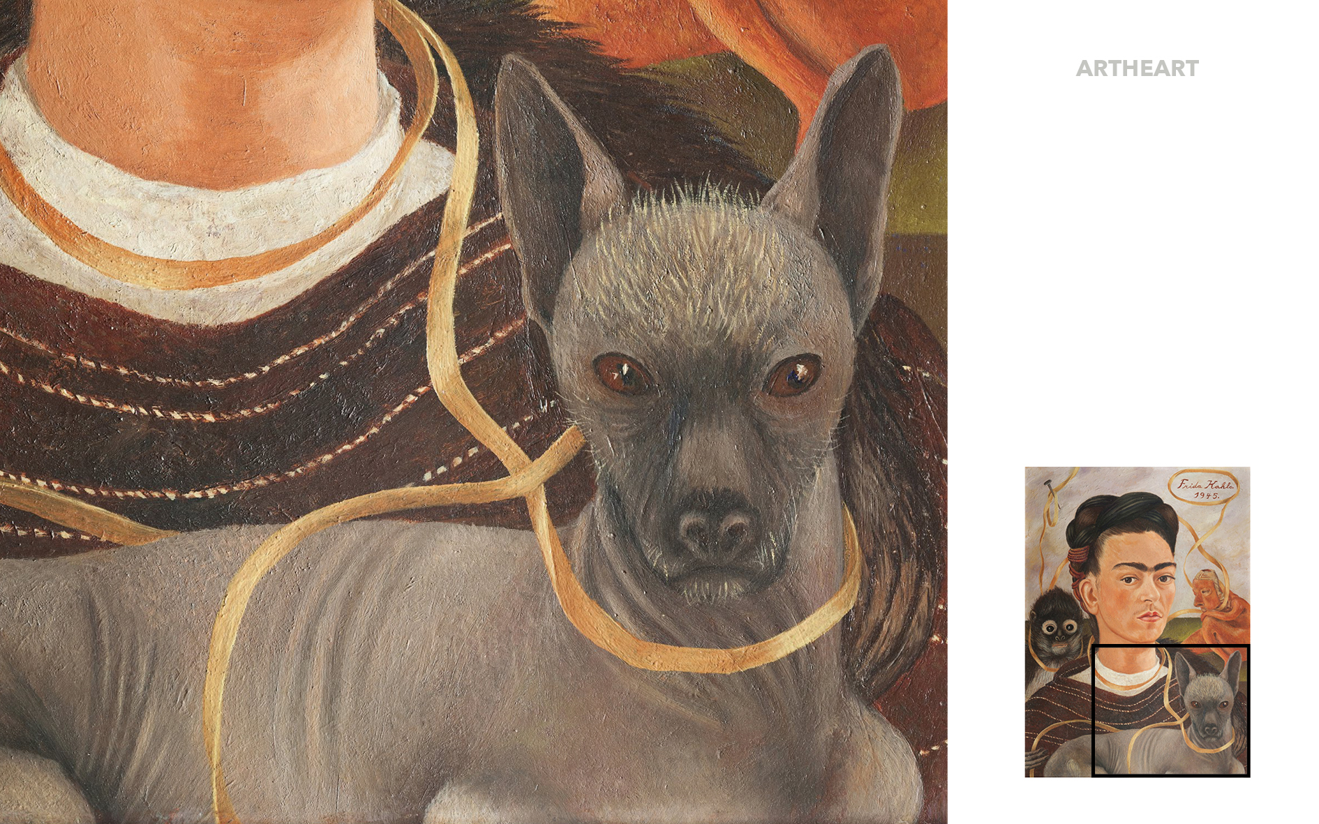 프리다 칼로의 자화상들 중 많은 작품에는 그녀가 좋아하는 동물이 등장한다. 앵무새, 사슴, 강아지, 원숭이 등을 가까이 두고 길렀다. 동물은 갖지 못한 아이를 대신한다.