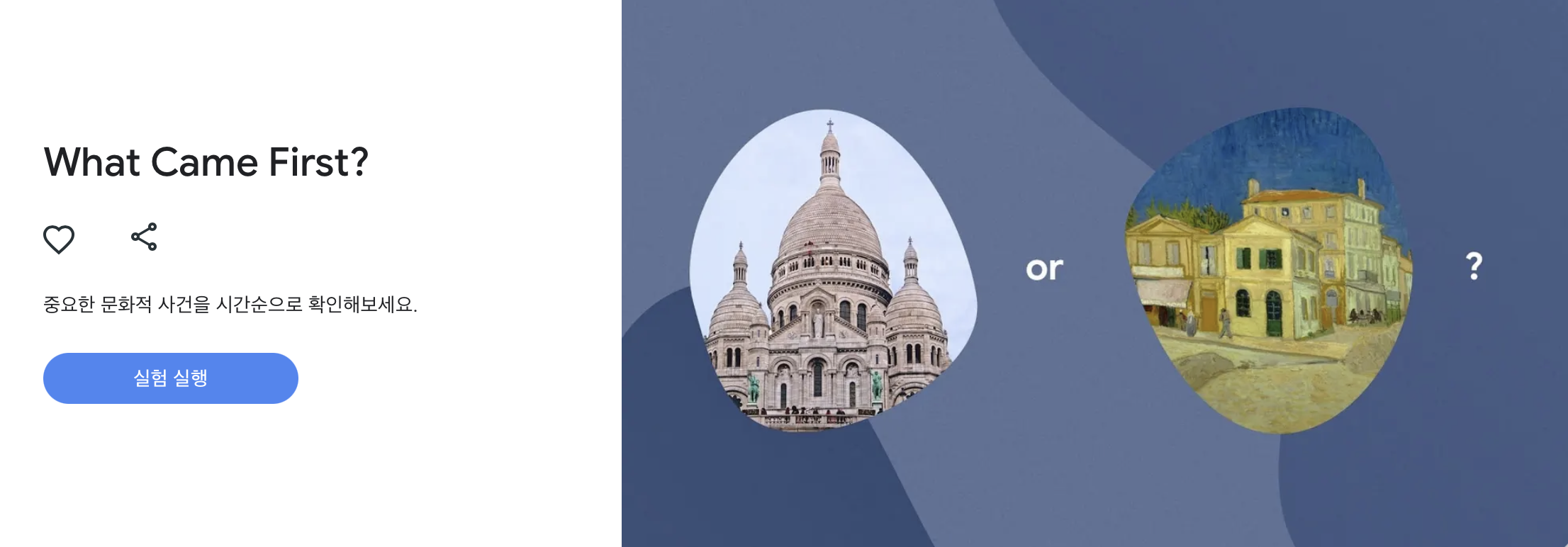 Google 아트 앤 컬처는 Google Cultural Institute와 제휴한 주요 박물관과 자료실 2,000여 곳의 콘텐츠 등 전 세계의 소중한 자료를 온라인으로 제공합니다.