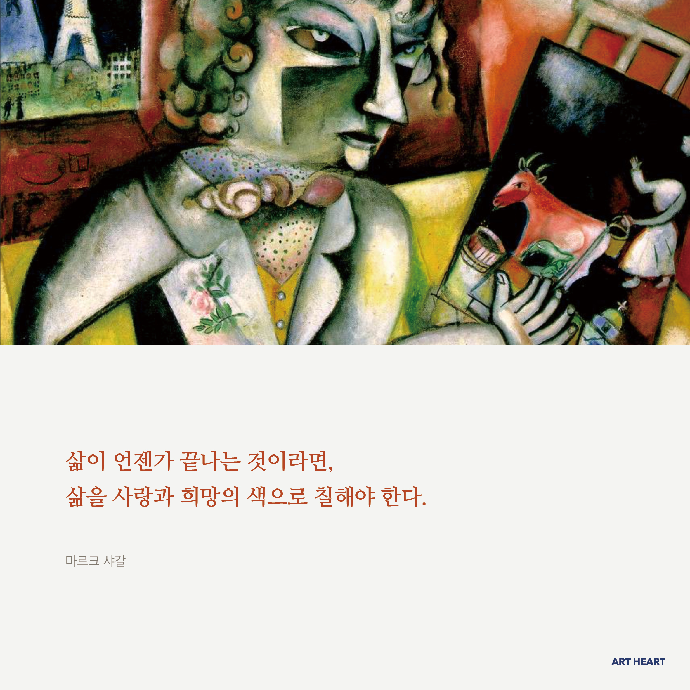 사랑을 화폭으로 옮겨놓는 작가, 색채의 마법사 예술계의 사랑꾼이라고 불리는 마르크 샤갈의 자화상, 손가락이 일곱개인 자화상을 소개합니다. 우리 인생에서 삶과 예술에 의미를 주는 단 한