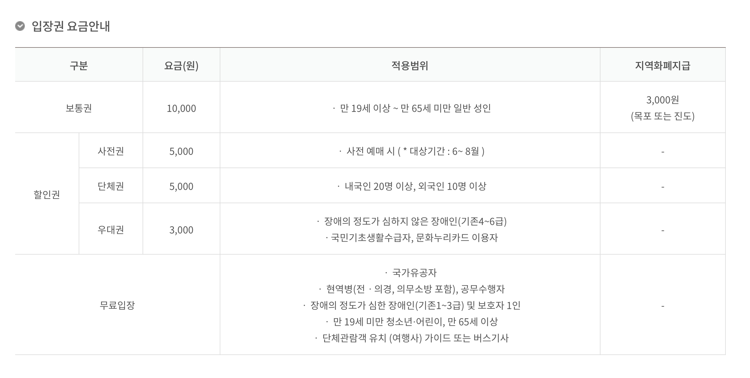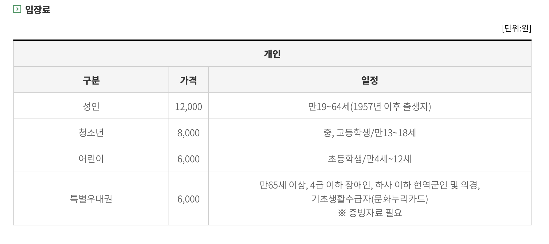 관람시간 : 10:00-19:00 폐장 1시간 30분 전까지 입장가능 (월요일 휴관)