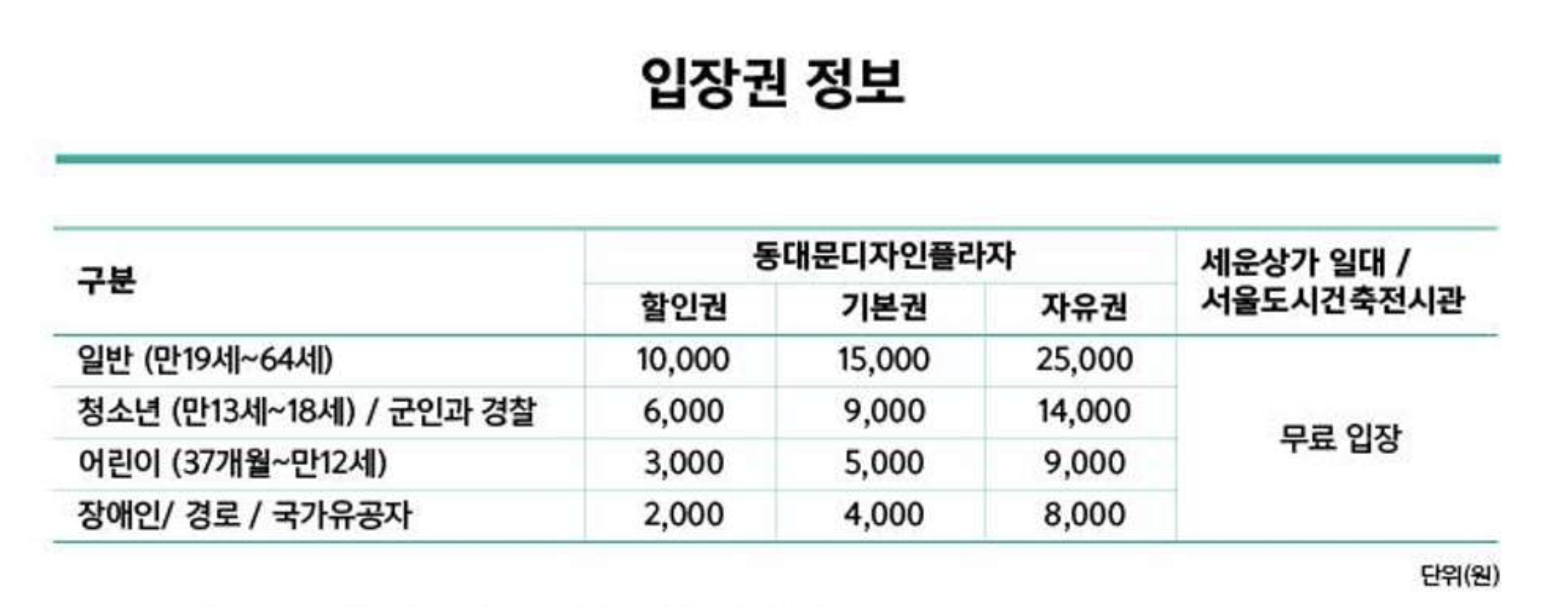 관람료 : DDP 전시는 유료이며,서울도시건축전시관과 세운상가 전시는 무료로 관람할 수 있습니다.