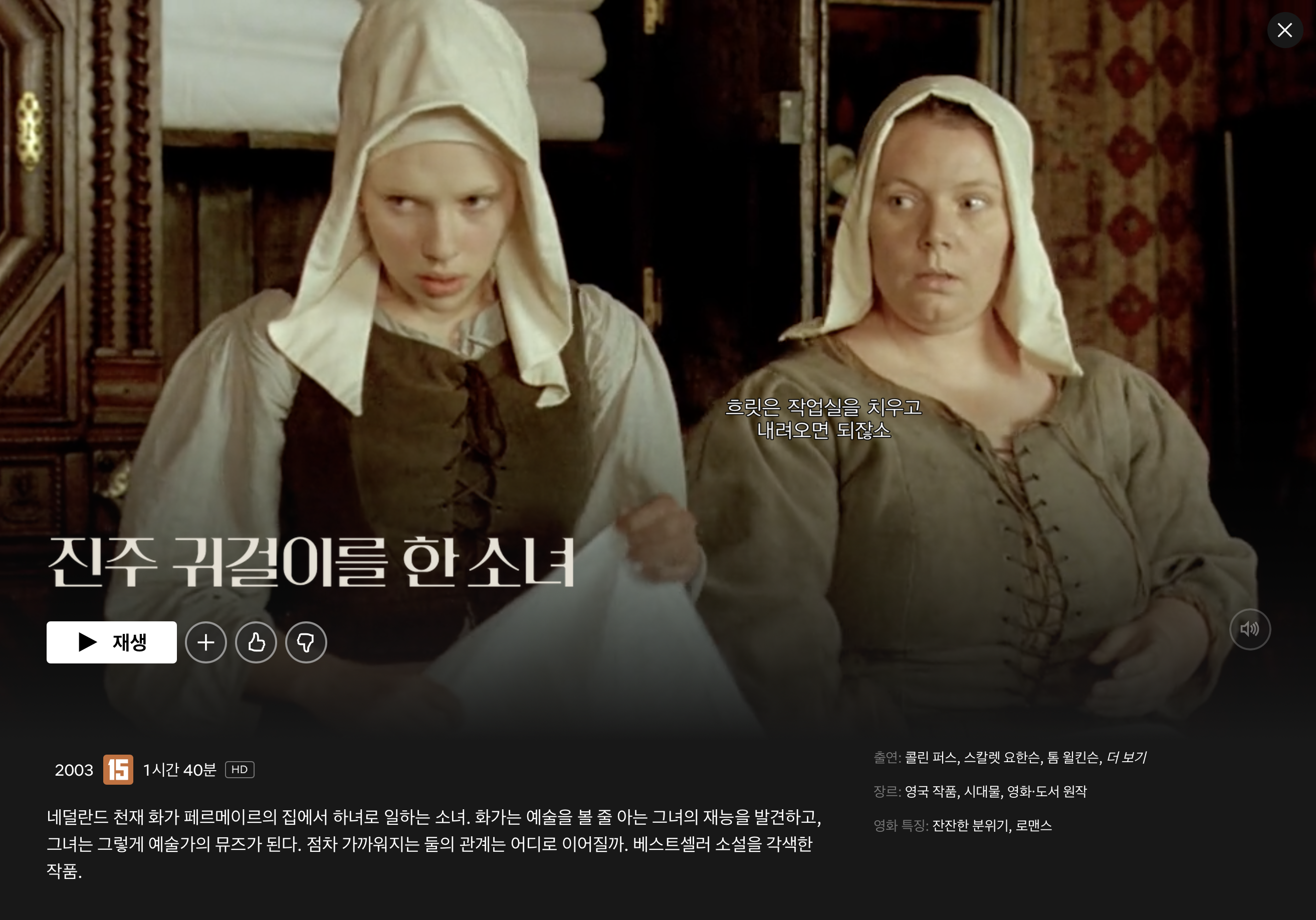 넷플릭스 : 내사랑 / 진주 귀걸이를 한 소녀 / 러빙 빈센트 / 고흐, 영원의 문에서