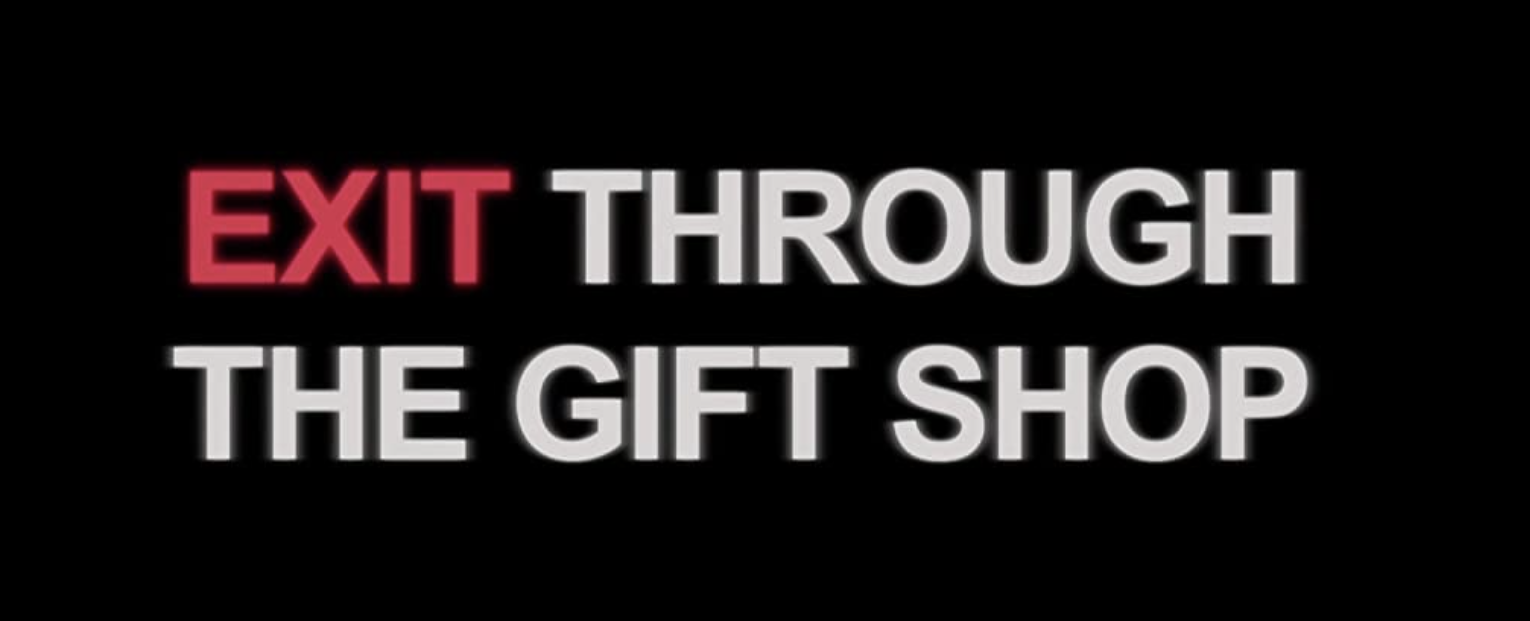 미술관에서 기념품 가게를 지나야 출구가 나온다는 것. 미술관에 머무르는 시간 보다 기념품 가게에 머무르는 시간이 더 길때도 있지 않나요? 보는 전시를 넘어서 소유의 전시로 바뀐지 오래 되었지만, 상업적으로 만 악이용하는 미술계에 향한 따끔한 비난이 내포된 뱅크시 작품에 등장했던 문구이기도 한 영화의 제목 <선물 가게를 지나야 출구>는 전시 관람 후 선물 가게를 꼭 지나쳐야만 출구로 나갈 수 있는 제도권 미술관의 자본논리에 대한 풍자를 담고 있습니다.