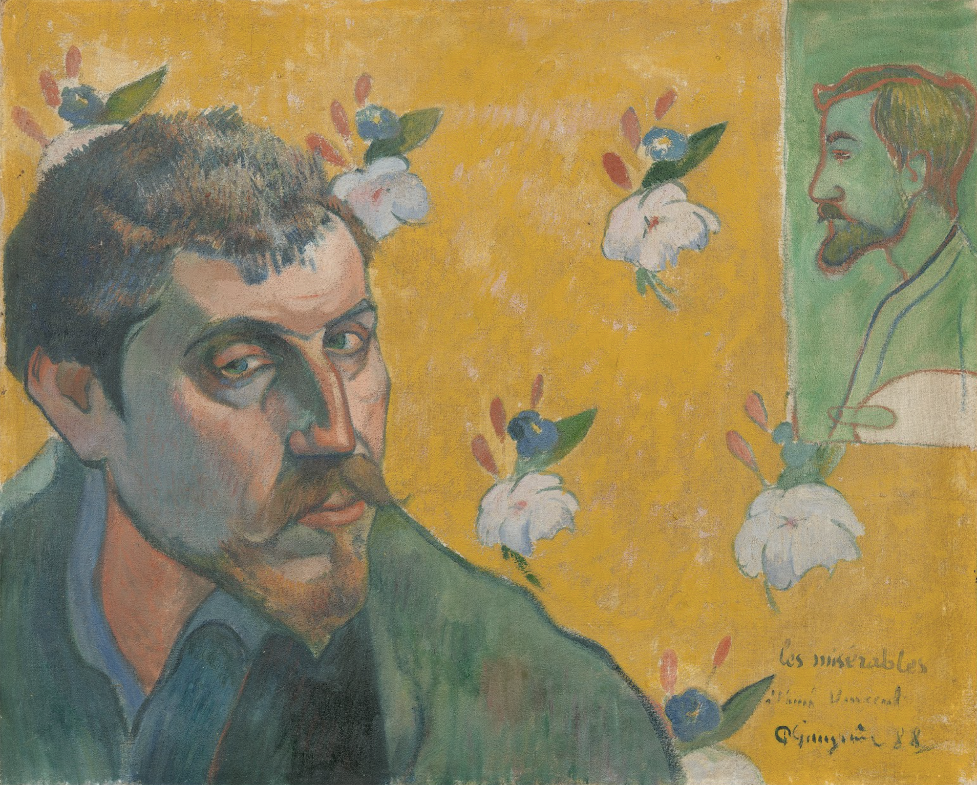폴 고갱의 자화상에 오른쪽 상단에 베르나르의 옆모습이 그려진 초상화가 보인다.