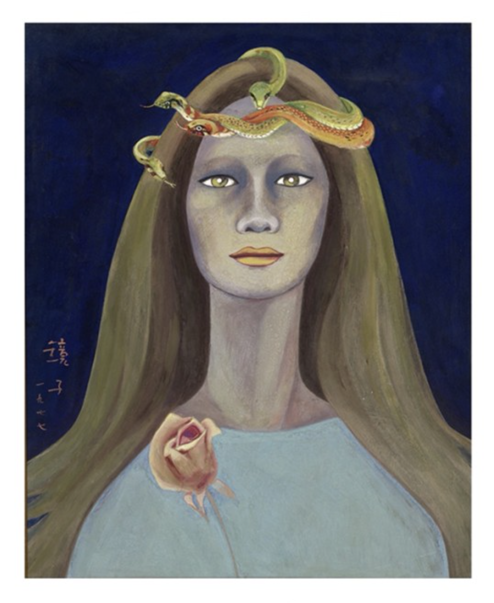 "내 슬픈 전설"이라는 말이 왠지 좋았다는 작가는 "꽃이니 뱀이니 머리에 얹은 것도 "한"이라고 말한다. 여인의 머리를 둘러싼 뱀은 고통스럽던 시절 자신을 지켜주던 수호신으로서 존재한다. 짙푸른 음영이 드리운 커다란 두 눈에 젊은 날의 슬픈 기억이 깃들어 있다.