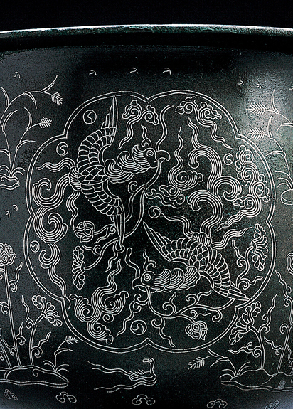 고려시대 은입사(銀入絲) 향완의 정수를 보여주는 이 작품은 세밀한 은입사 기법과 함께 당당한 몸체, 유려한 기형이 돋보인다. 기면의 두께를 2mm 정도로 얇게 주조한 기술적인 측면과 화려하게 장식된 은입사 문양에서 예술적 우수성이 돋보이는 걸작이다. 몸체와 다리 등에 표현된 문양이 매우 세밀하고 정교하여 당시의 뛰어난 은입사 제작 솜씨를 엿볼 수 있다. 몸통 부분에는 총 4개의 팔능형(八菱形) 화창(花窓)을 돌아가며 구획하고 그 속에는 용과 봉황을 각기 대칭되는 두 곳에 장식하였다. 몸체 아랫부분에 묘사된 물가의 언덕에는 연꽃과 수초들이 피어있고 수초가 자란 언덕이 원경으로 묘사되어 있으며 그 위에 줄지어 혹은 따로 날아가는 새들이 간략하게 표현되었다. 이 향완은 그 형태와 문양도 아름답지만 제작연대를 추정할 수 있는 명문(銘文)이 굽도리 부분에 은입사 되어 있어 더욱 가치가 높다.