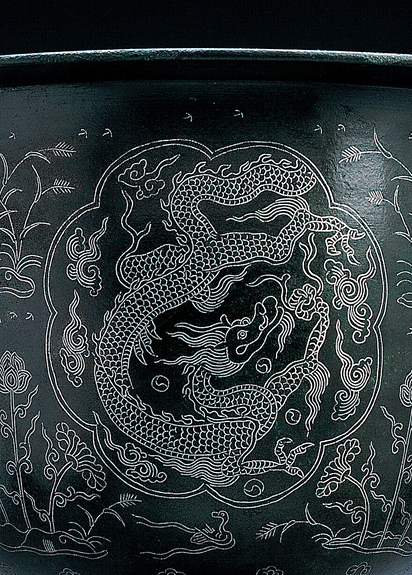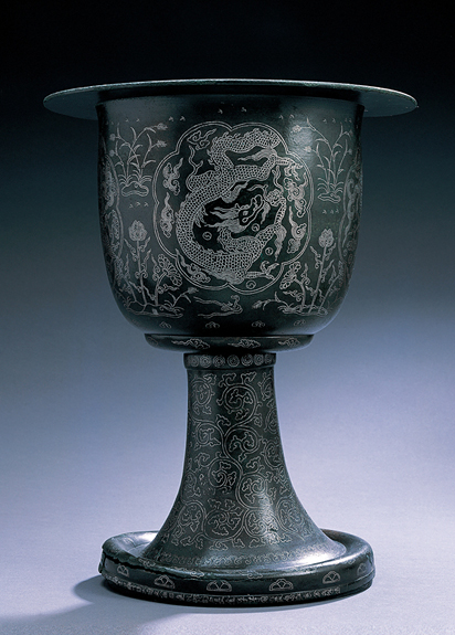 靑銅銀入絲雲龍文香垸