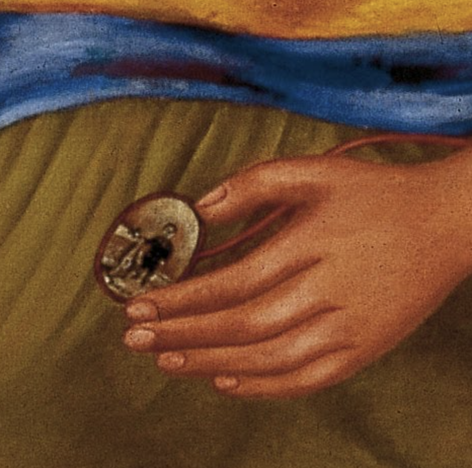 남편 디에고 리베라의 초상화를 쥐고 있는 프리다