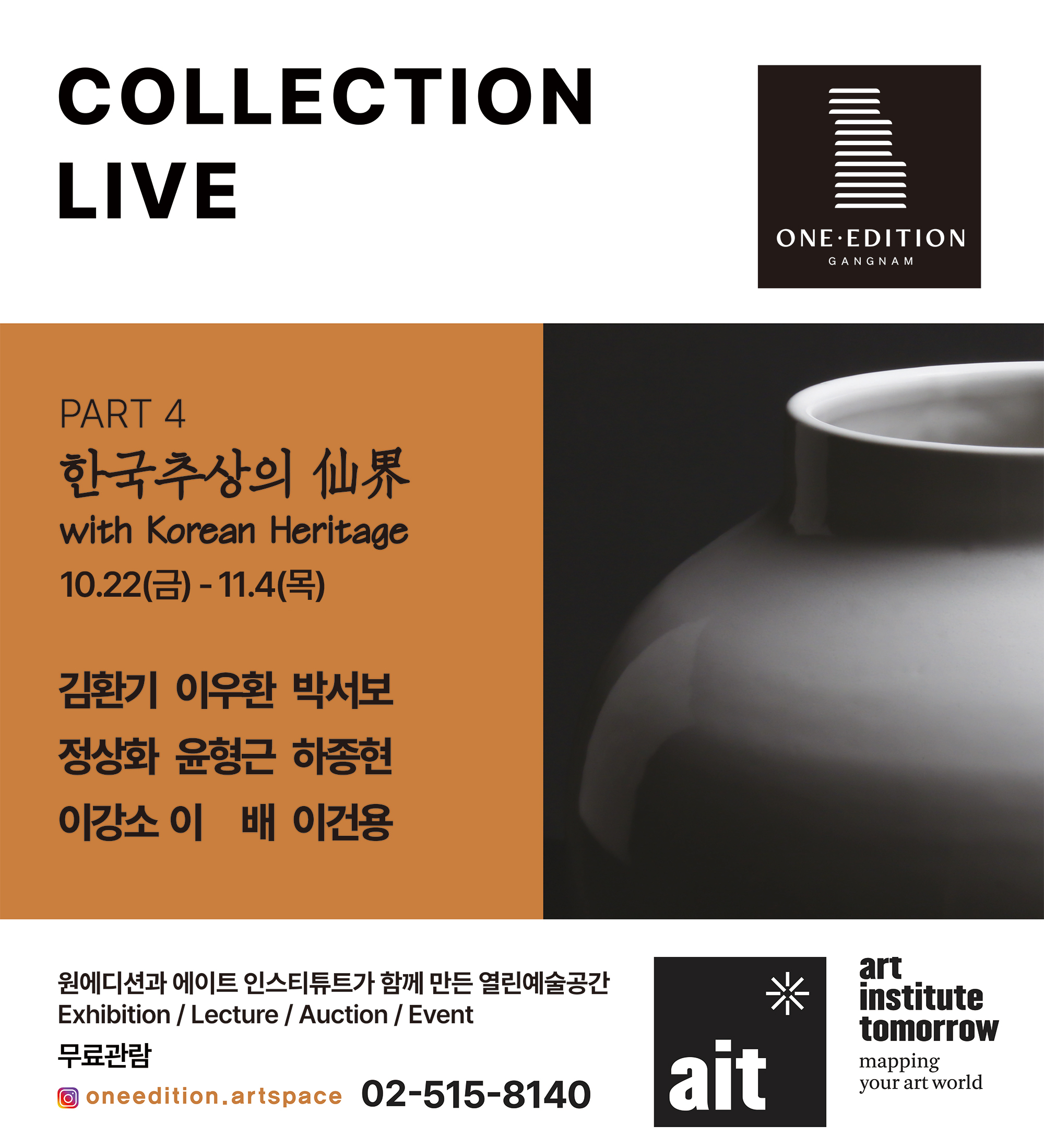 하이앤드 콤펙트하우스 원에디션 강남과의 협업으로 '원에디션 아트스페이스'를 8월에 개관해 전시와 강의 및 이벤트를 진행해오고 있는 문화예술교육 기관 에이트 인스티튜트. 이는 지난 10년간 전시와 옥션, 아트 프로젝트와 예술인문 강좌들을 기획해 온 에이트 인스티튜트가 원에디션 강남의 기업 홍보관으로 사용되는 공간에 전시공간을 기획한 새롭고 독특한 시도이다. 1,2,3부 전시에 이어 10월 22일부터 선보이는 '한국추상의 仙界'는 김환기, 이우환, 윤형근 작품 등 한국 추상의 마스터피스와 한국 고미술을 한자리에서 만나볼 수 있는 전시이다. 한국 추상 미술의 대가들의 작품과 한국의 고미술품의 조화와 아름다움을 느낄 수 있는 이번 전시에서는 과거부터 현재까지 이어져 온 한국의 '미'를 경험할 수 있다. 이번 전시는 오는 10월 22일부터 11월 4일까지 개최된다.