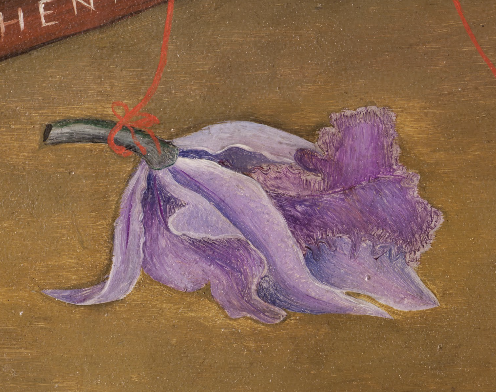 왼쪽에는 기계, 가운데에는 디에고가 프리다에게 준 난초, 오른쪽에는 골반 뼈가 있다.