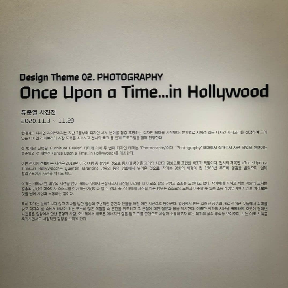 류준열의 첫 사진전 <원스 어폰 어 타임... 인 할리우드 (Once Upon a Time…in Hollywood)>