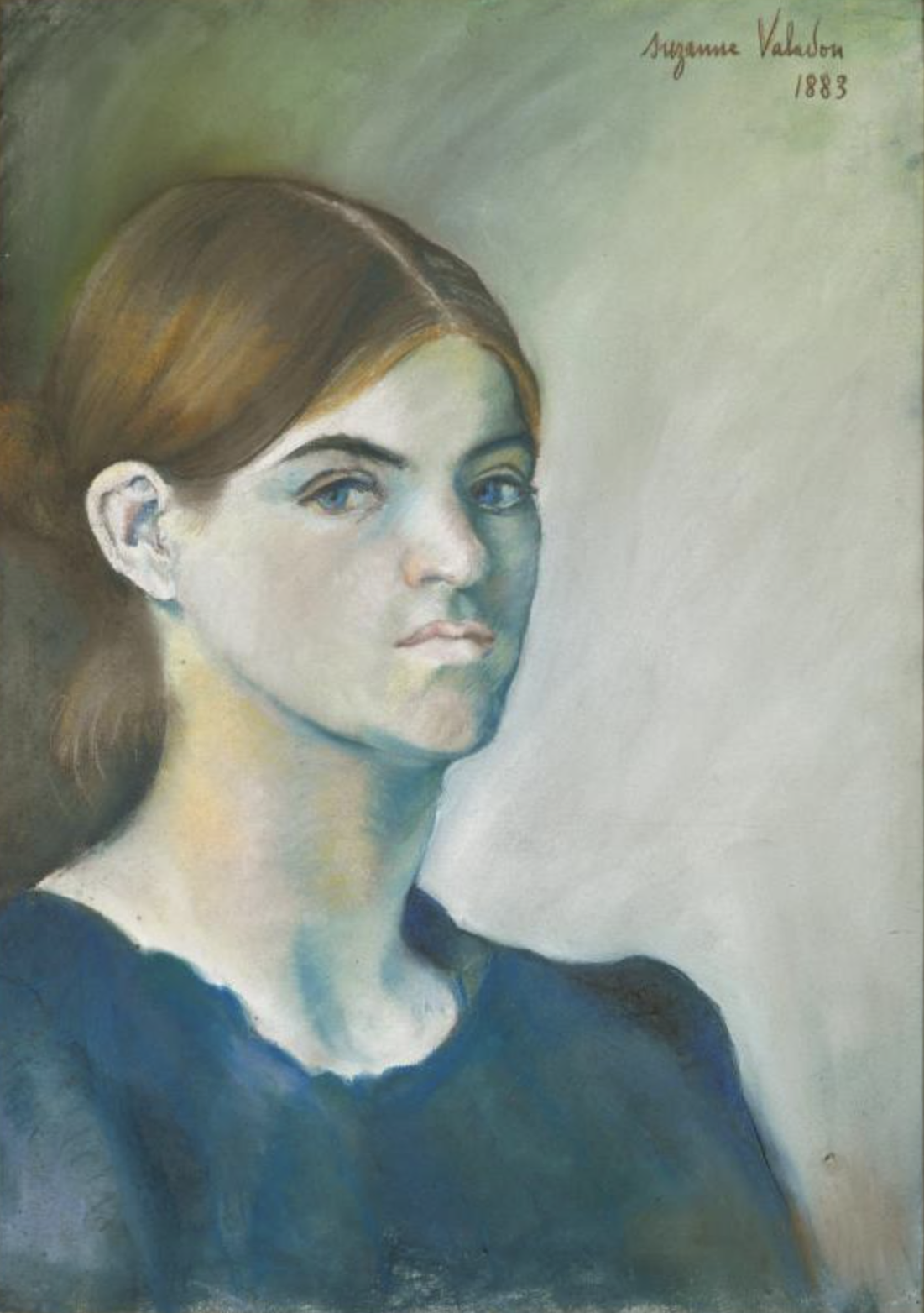 담담하면서도 강인한 느낌을 주는 이 자화상은 아이를 출산하고 그해에 그린 자화상이다. 당시 나이 15살. 끝내 남편이 누군지는 밝히지 않은 수잔 발라동은 가난한 가정환경 탓에 일찍 사회에 나왔다. 11살 때부터 꽃, 야채 시장, 공장 등을 전전하며 일을 하다 마침내 서커스에서 일을 시작했다. 서커스 일에 애정을 갖고 임했지만, 사고로 일을 하지 못하게 되었다. 1880년 15살, 모델로 처음 데뷔한 발라동은 퓌비 드 샤반, 오귀스트 르느와르, 앙리 드 톨루즈 로트렉의 화가의 모델로 10년 동안 활동했다. 르느와르 모델로 지낼 시절에 르느와르에게 자신이 그린 드로잉을 보여주자, 르느와르는 발라동을 쫓아내 버렸다. 그 당시 모델은 정부로 여겨져 사회적으로 인식이 좋지 못하였으며, 화가라는 직업이 남성의 전유물이라는 인식으로 여성화가를 보기 드문 시절이었다. 처음 그녀의 재능을 알아 봐준 톨루즈 로트렉은 그녀를 드가에게 소개했다. 드가는 그녀의 드로잉을 보자 바로 구입했고, 그녀를 격려했다.