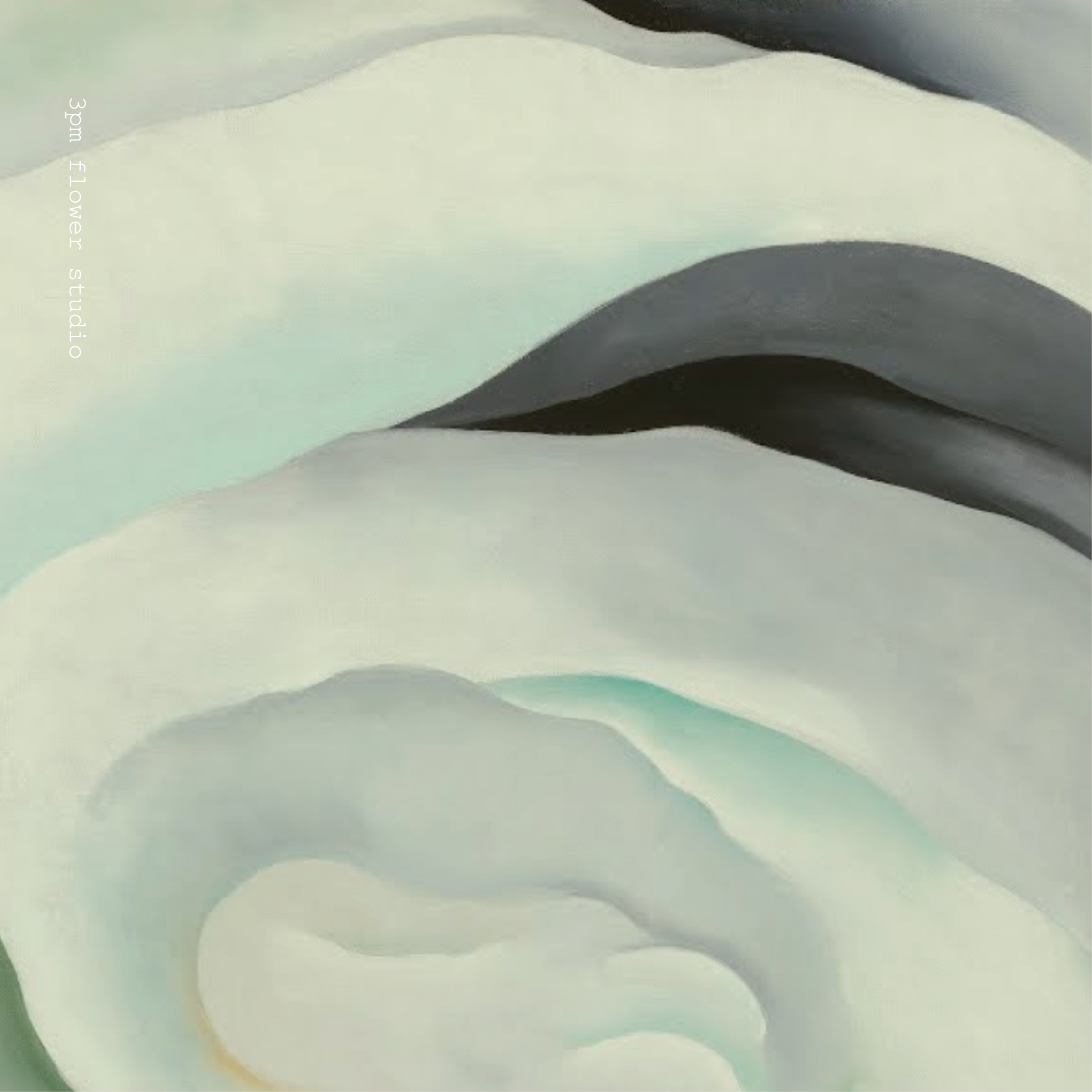 하얀 장미 꽃봉우리의 시작 부분은 옅은 회색이 바탕으로 가장자리에 푸른색, 노란색, 보라색이 띤다. 오른쪽 상단과 왼쪽 하단으로 갈수록 검은색을 더하면서 연약하게만 보이던 꽃이 색다르게 보인다. 번지듯 퍼지는 컬러 그라데이션으로 깊이감이 생기고, 동양적인 느낌도 준다. 꽃잎의 라인들은 물의 흐름처럼 유기적으로 자연스럽다. 캔버스 안에 꽃이 가득 찼지만, 컬러의 조화로 여백이 생겨 답답하지 않다.