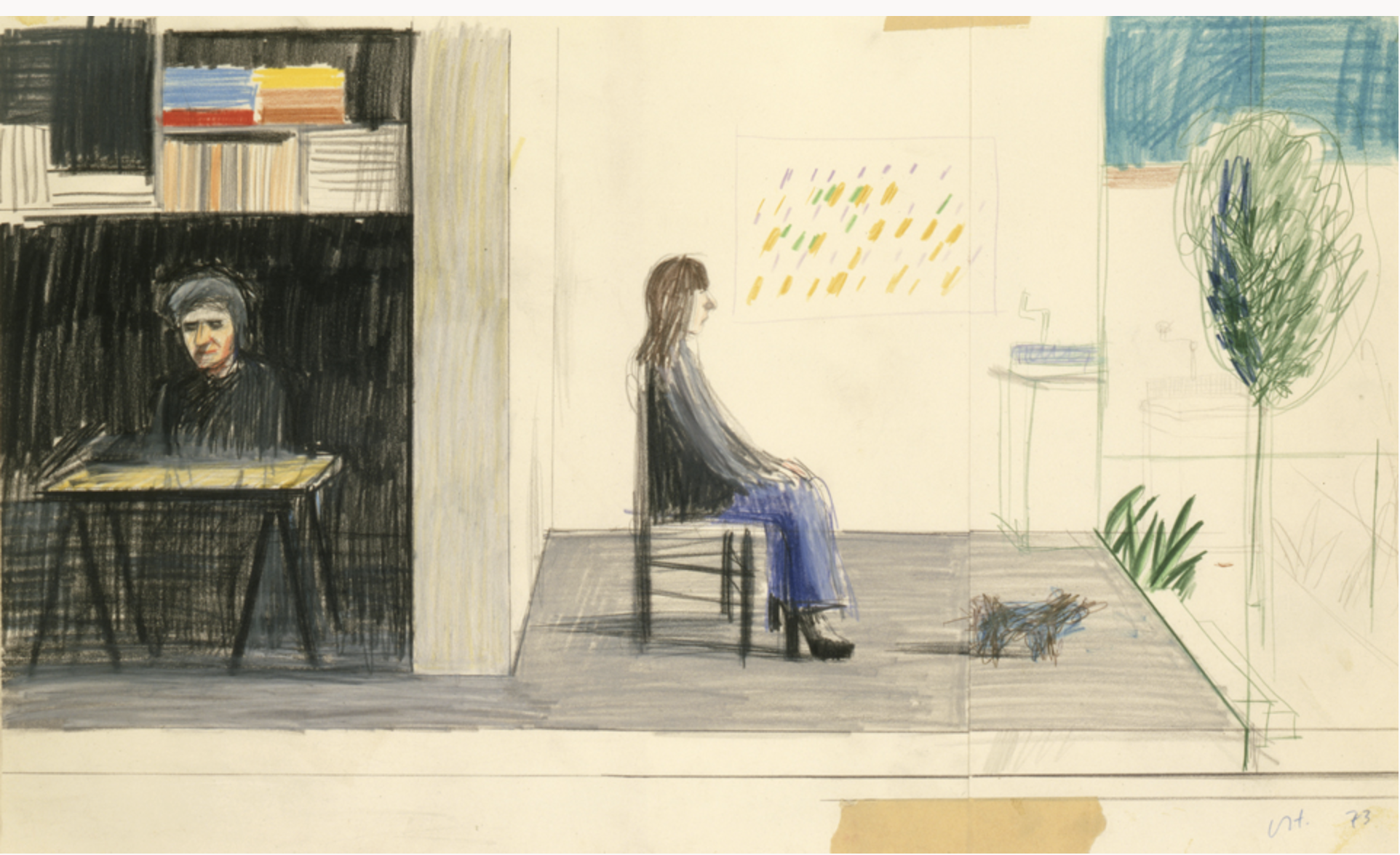 실제로 이 그림은 셜리 콜리 파브와 그레고리 마수로프스키가 20년 동안 지낸 파리의 작은 두 개의 방이 있는 스튜디오를 그렸다. 데이비드 호크니의 말에 따르면 스튜디오에서 셜리와 그레고리를 보기 위해서 벽을 철거해야 했다. 스튜디오의 측면을 볼 수 있는 유일한 방법은 벽을 철거하는 것. 그림은 그대로 그린 것이다.