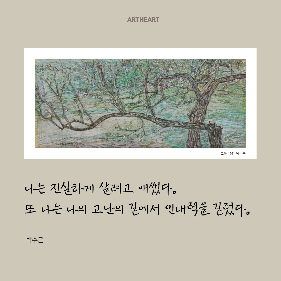 나는 인간의 선함과 진실함을 그려야 한다는 예술에 대한 평범한 견해를 지니고 있다. / 박수근 전시명 : 박수근 봄을 기다리는 나목 전시기간 : 2021.11.11 - 2022.03.01 전시장소 : 국립현대미술관