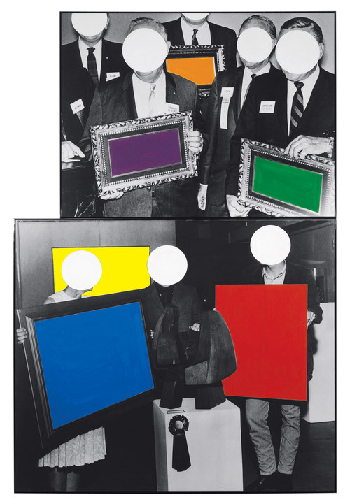 1980년대 중반부터는 원색의 기하학적 형상을 사용하였는데, 사진의 일부를 가리거나 특정 형상을 단색의 평면으로 지움으로써 비현실성을 강조하였다. 또한 인물의 얼굴 위에 노랑, 빨강, 파랑 등 원색 동그라미를 그려 익명성을 부여하였다. 그는 특히 인공과 자연, 군중과 개인, 남성과 여성, 혼란과 질서, 과거와 현재, 사랑과 미움 등을 대비시켜 긴장감을 고조시켰다. 그의 작품은 사진과 회화, 구상과 추상 등 매체와 양식의 다양성을 보여줄 뿐만 아니라 자서전적이면서도 역사와 사회, 문명을 아우르는 중층적 내러티브를 구성한다.