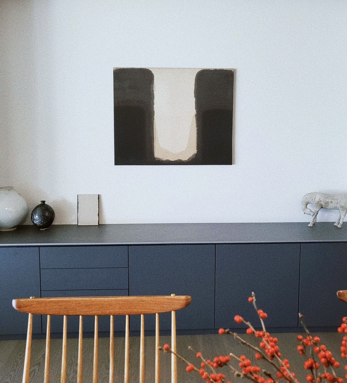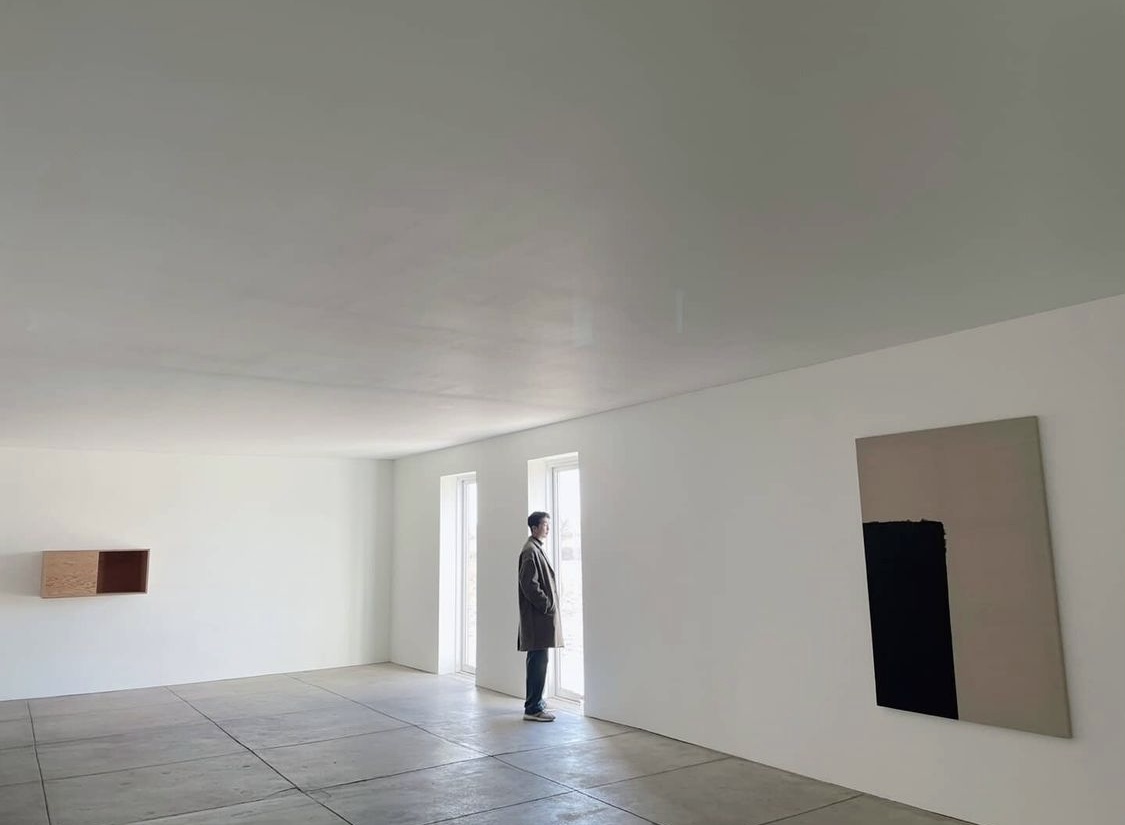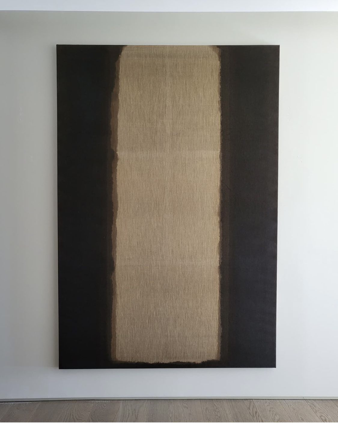 단색화의 거장, 침묵의 화가로 불리는 윤형근 화백(1928~2007)은 청색(Ultramarine)’과 흙의 빛깔인 ‘다색(Umber)’의 안료를 혼합하여 깊은 농도로 화폭에 풀어내 작업했다. 표백 처리를 하지 않은 마포나 면천 위에 스미게 한 물감의 자연스러운 번짐 효과가 윤형근 작업의 특징이다.