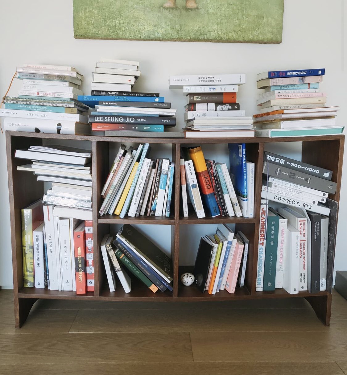 휘게 만드는 책장에 꽂힌 책은 미술에 관련된 책들이 가득하다.