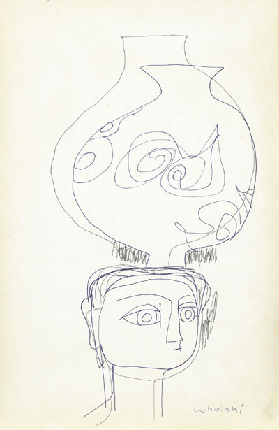 김환기가 1957년 스케치북에 그린 펜 드로잉