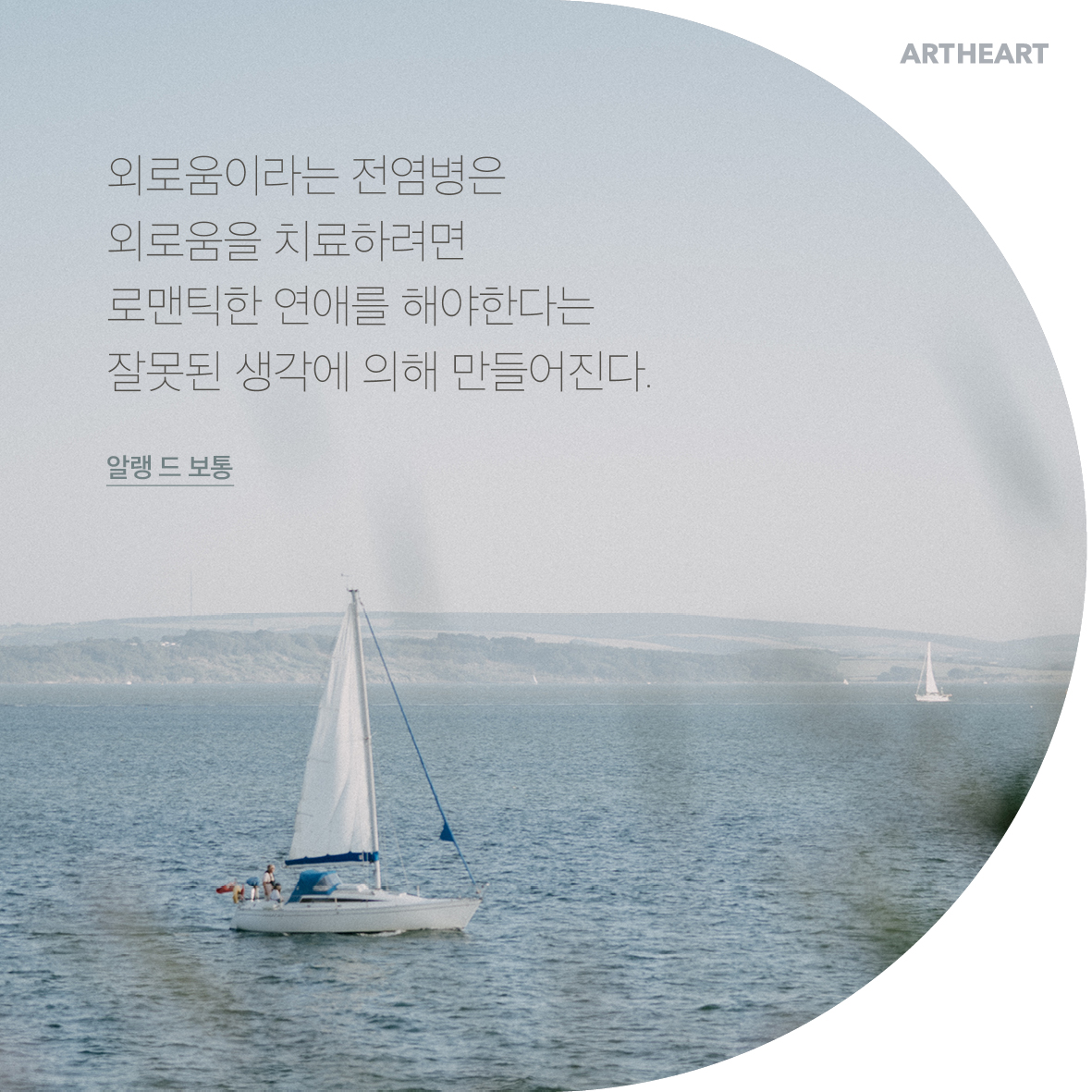 외로움이라는 전염병은 외로움을 치료하려면 로맨틱한 연애를 해야한다는 잘못된 생각에 의해 만들어진다. / 알랭 드 보통