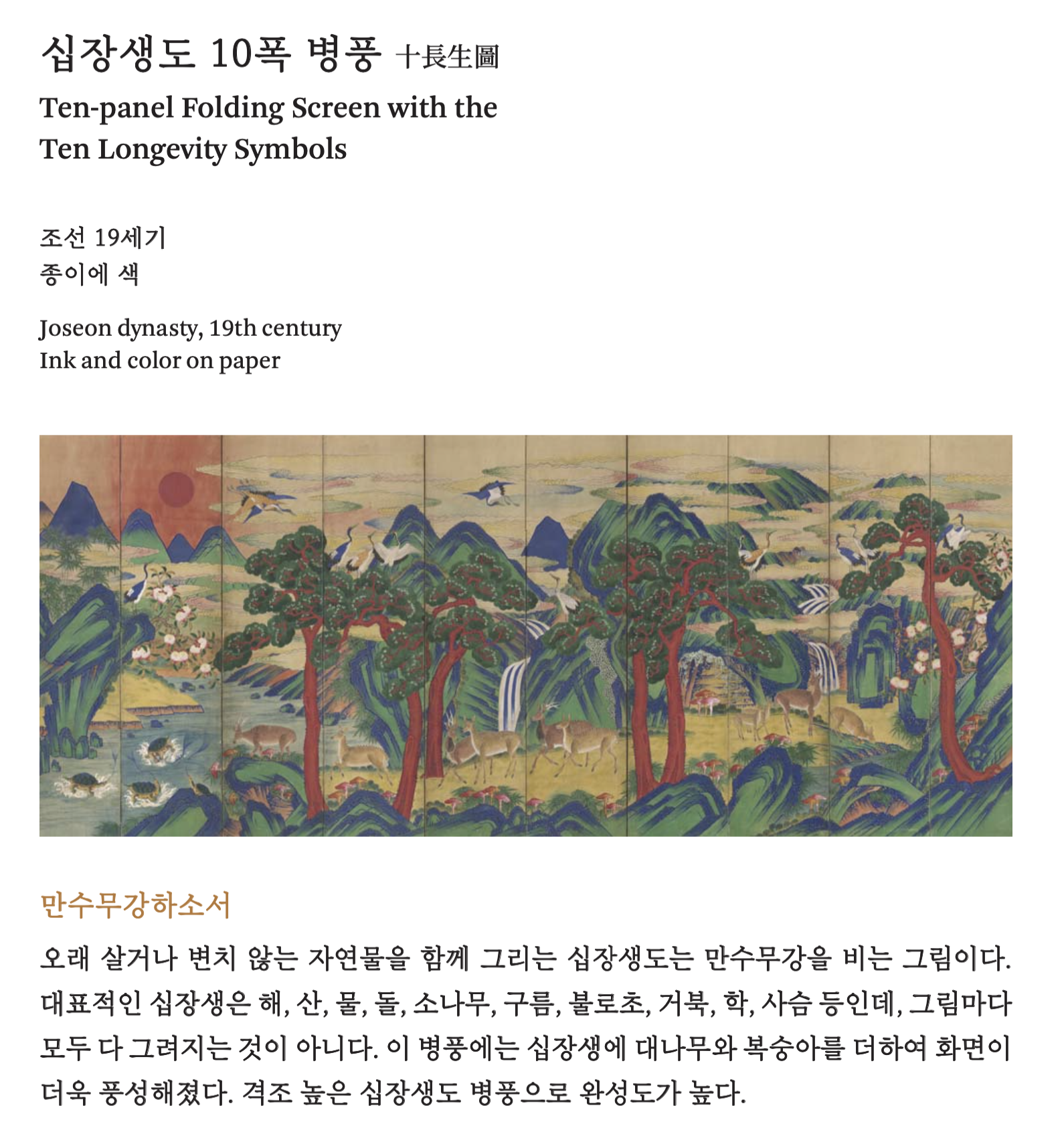 십장생도 10폭 병풍