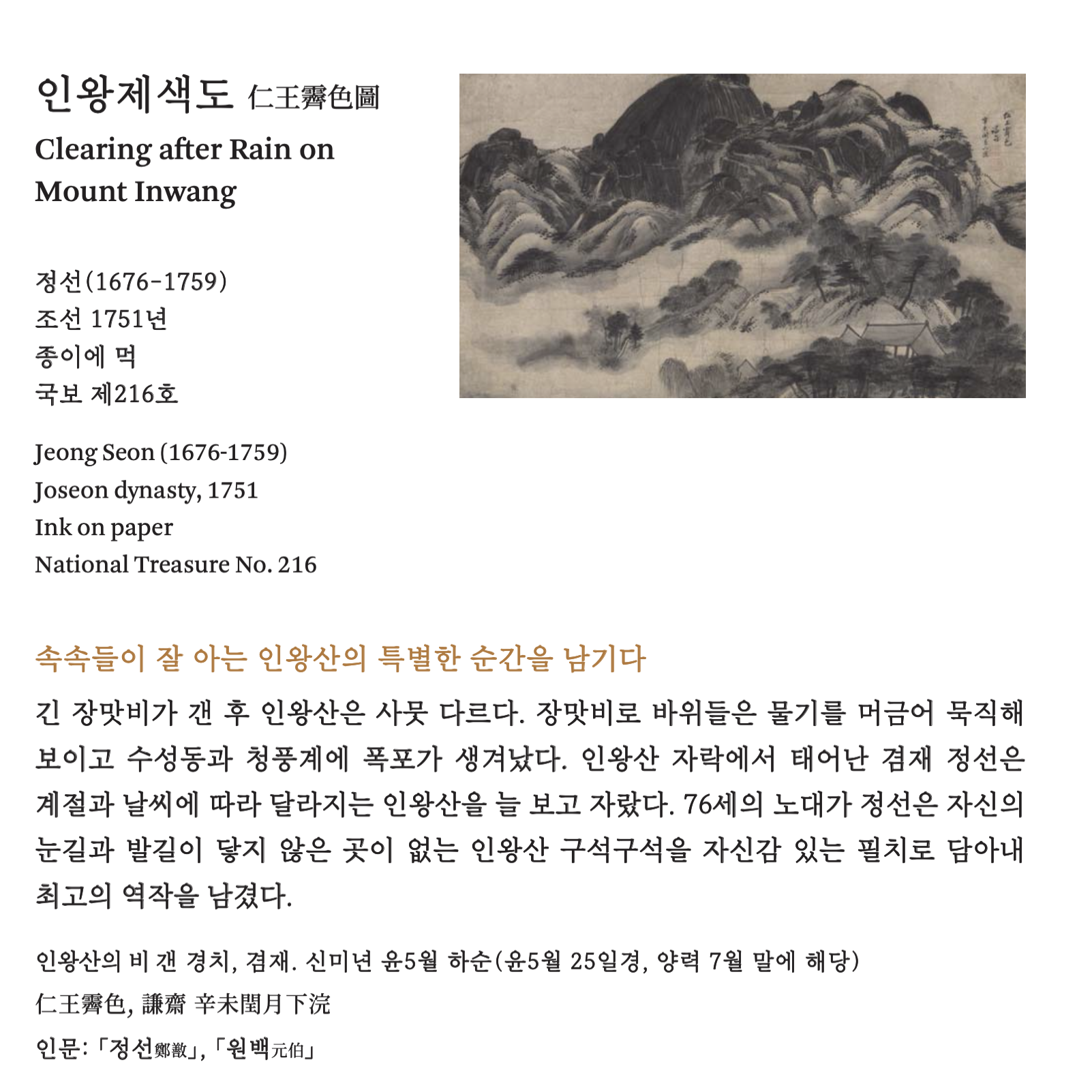 정선 인왕제색도