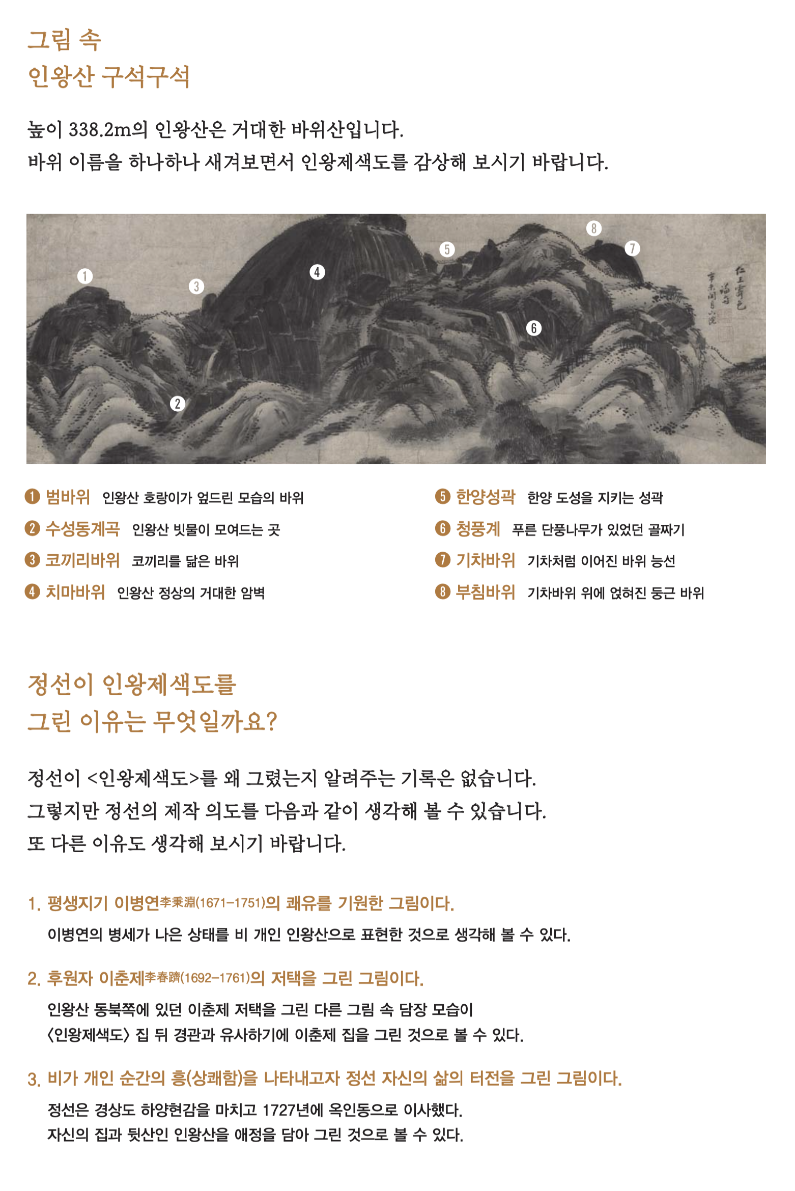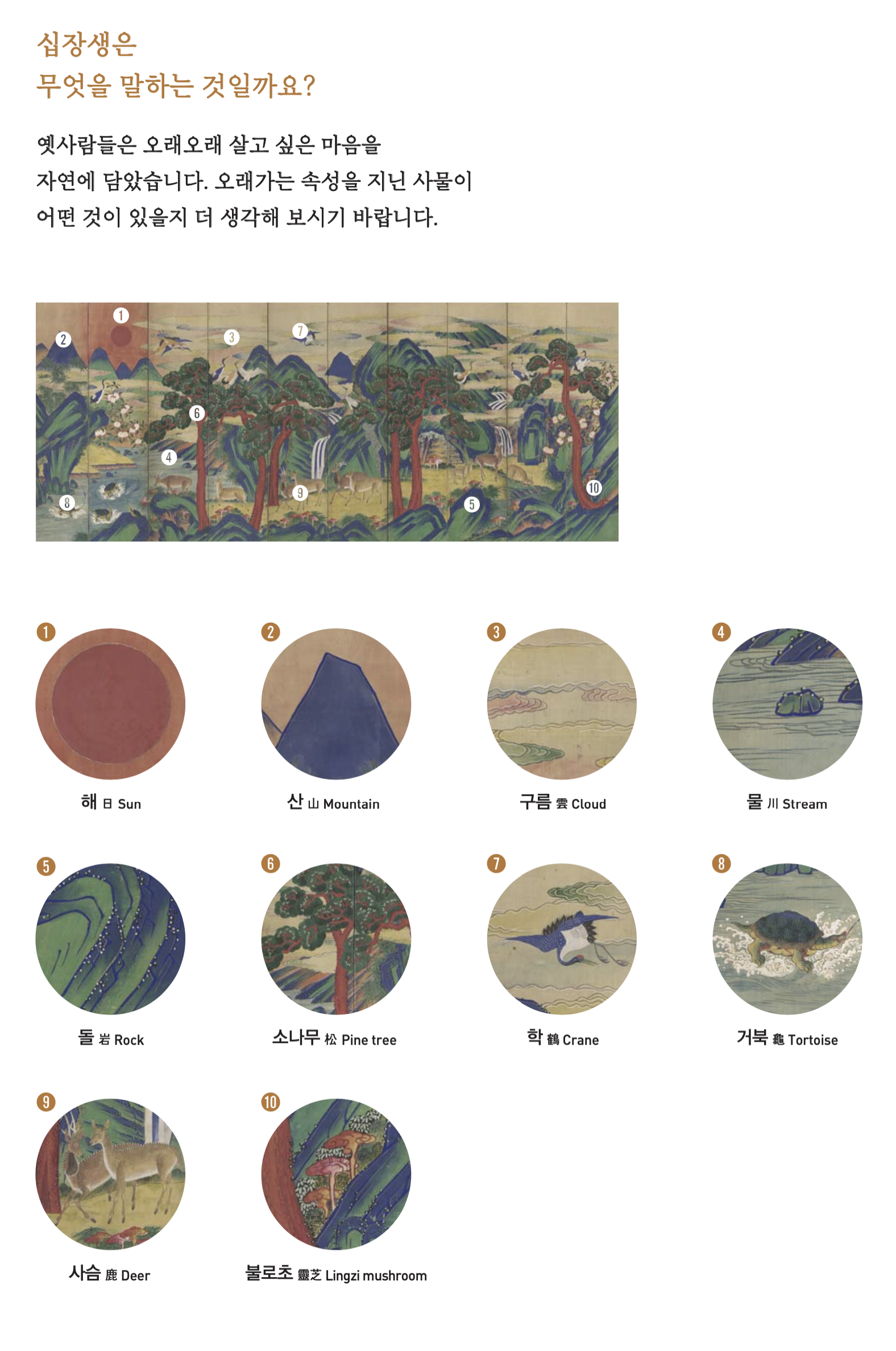 전시품 해설서 pdf 중 - 인왕제색도, 추성부도,천수관음보살도, 십장생도 10폭 병풍