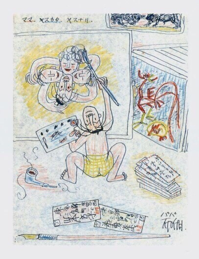 잘 있었니? 아빠가 있는 서울은 서늘해서 그림 그리기에 아주 알맞고 좋단다. 모두 사이좋게, 그리고 튼튼하게, 용감하게 하고 싶은 것을 열심히 해주기 바란다. 이제 얼마 안 있으면 아빠가 너희들이 있는 미슈쿠로 갈 테니.. 태현이 형하고 사이좋게 기다려다오. 아빠는 태현이와 태성이가 게와 물고기와 놀고 있는 그림을 또 그렸단다. / 이중섭