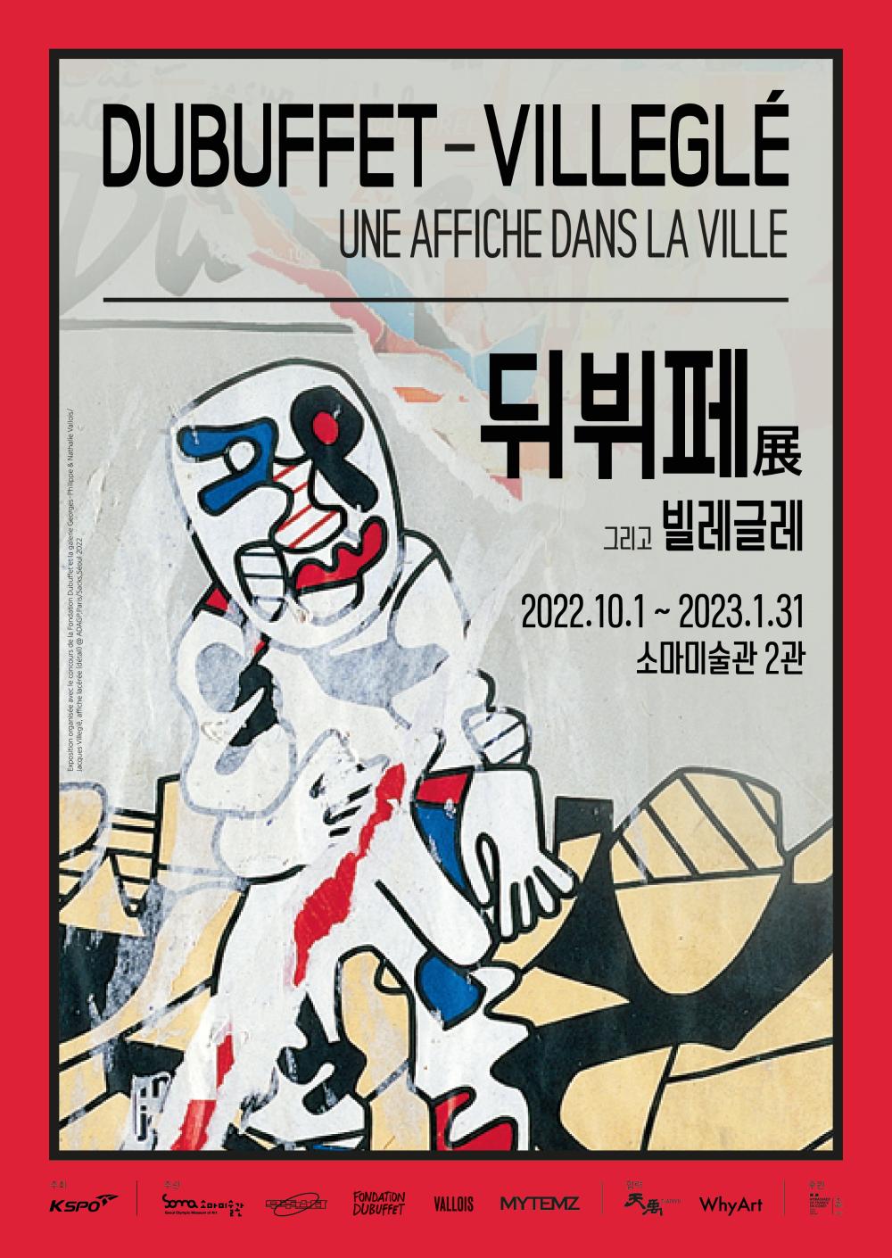 빌레글레는 장 뒤뷔페의 영향을 크게 받은 화가이며, 상징적인 글자로 찢어지거나 찢어진 포스터가 있는 데콜라주로 작업하는 프랑스 혼합 미디어 예술가이다. 올해 3월 96세를 맞이한 작가는 지난 6월 6일 세상을 떠나 이번 전시가 그의 생전 마지막으로 준비한 투어이자 회고전이다.