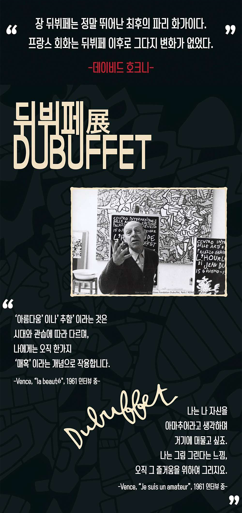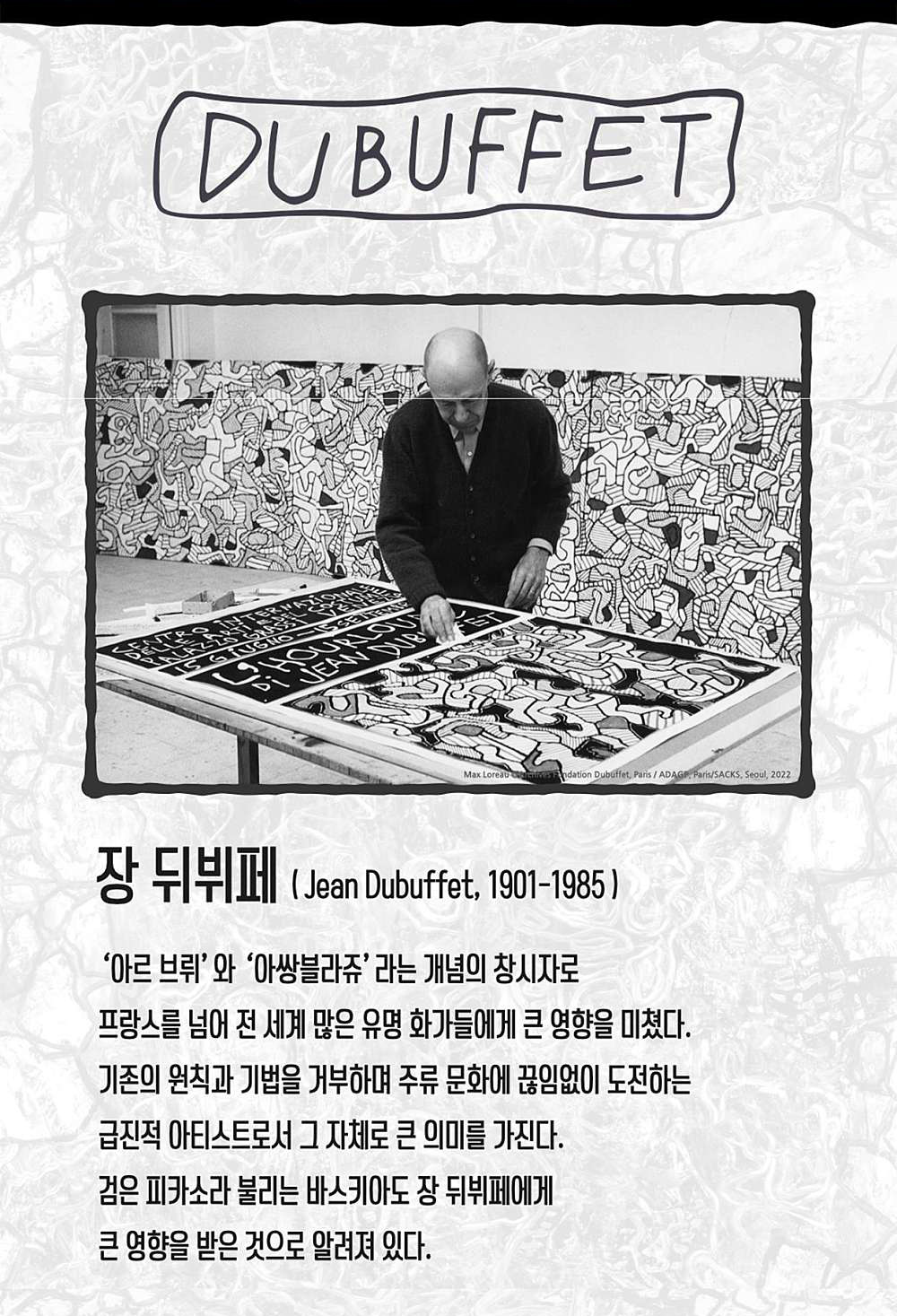 피카소 이후 파리의 대표적인 작가 '장 뒤뷔페' 프랑스의 교과서에 1순위로 등장하는 화가. 프랑스 현대미술의 거장 장 뒤뷔페의 특별전 《뒤뷔페》展