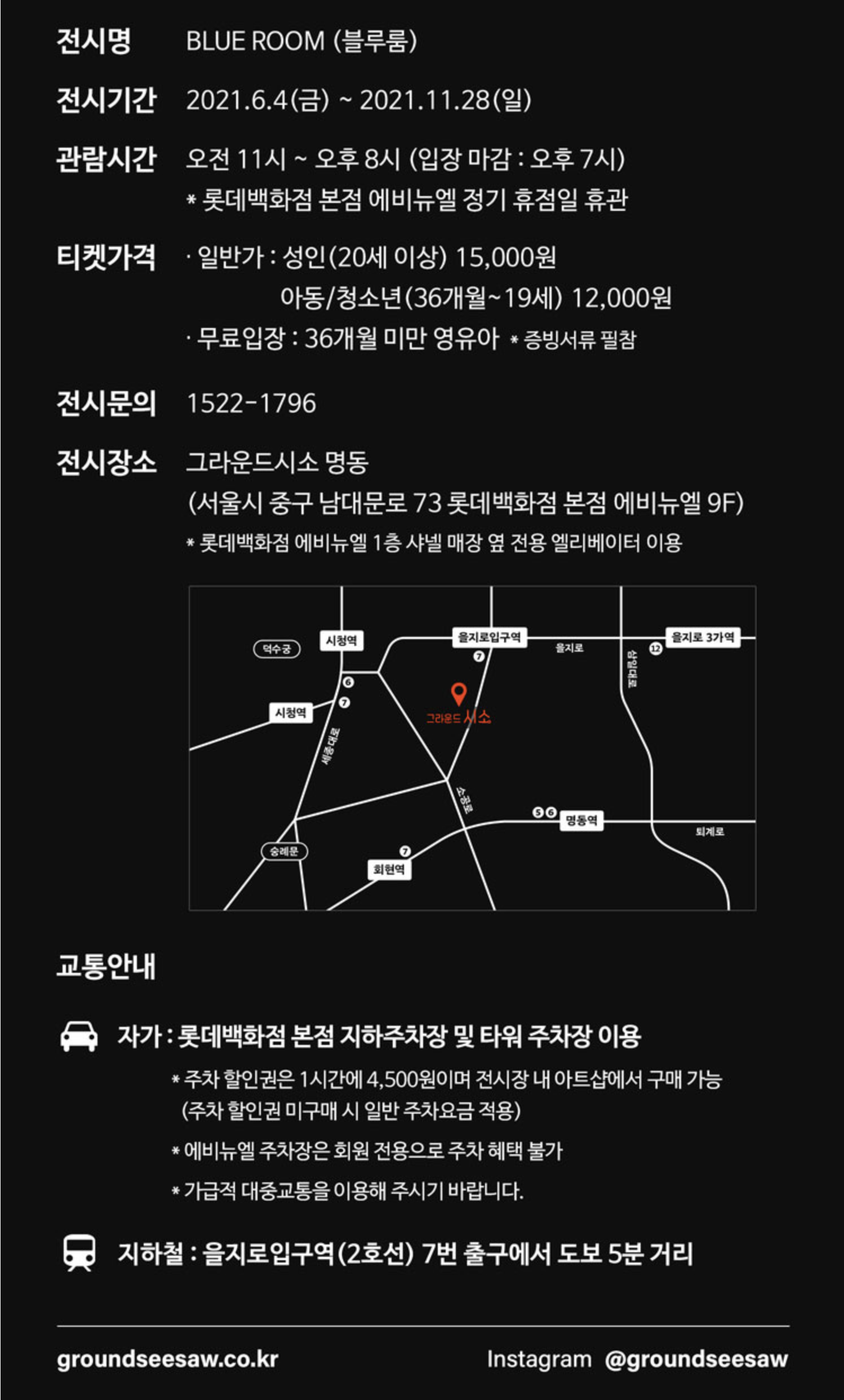 전시장소 : 그라운드시소 명동 (서울특별시 중구 남대문로 73 에비뉴엘 9층)